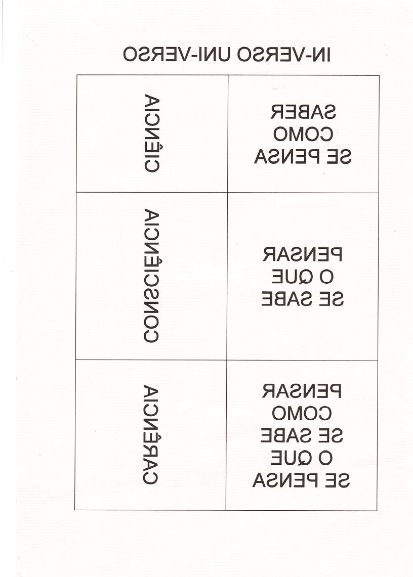 [Ciência / Saber como se pensa / Consciência / Pensar o que se sabe / Carência / Pensar como se sabe o que se pensa]