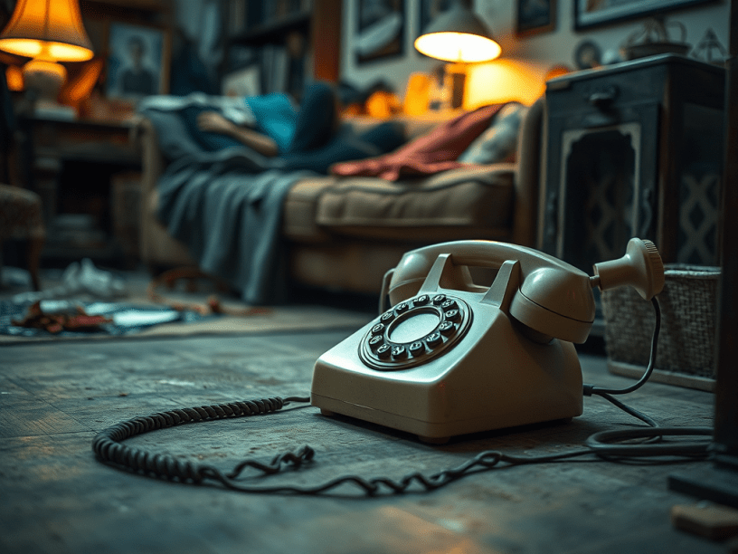 Sobre a estante, o telefone. Um objeto arqueológico e disfuncional. Na tela, os ícones de chamada sobrepostos a uma imagem de um gato angorá neon que ela escolheu.